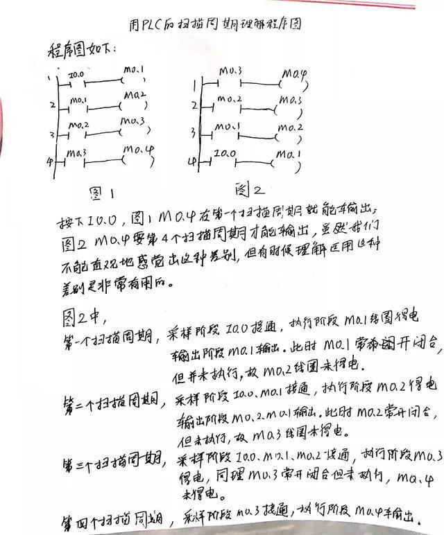 需要注意的是,雖然PLC與傳統(tǒng)繼電器在觸點(diǎn)和線圈響應(yīng)時(shí)間上沒(méi)有區(qū)別,但當(dāng)傳統(tǒng)繼電器在觸點(diǎn)和線圈響應(yīng)時(shí)間上沒(méi)有區(qū)別時(shí),PLC中觸點(diǎn)和線圈的位置在邏輯上是不同的。下圖中的兩個(gè)程序看起來(lái)相同,但實(shí)際執(zhí)行結(jié)果完全不同。I0.0,圖1中的M0.4可以在第一個(gè)掃描周期中輸出,圖2中的M0.4只能在第四個(gè)掃描周期中輸出。雖然直觀上是同時(shí)輸出的,但程序邏輯上有很大的差異。如果不深入理解PLC工作原理,很難理解PLC程序的運(yùn)行邏輯。