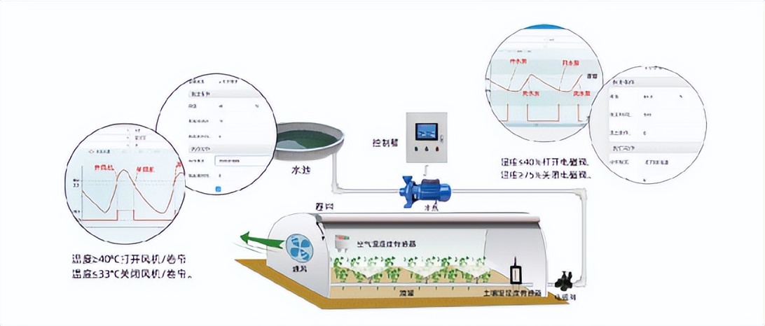 智能溫室大棚控制系統(tǒng)通過在線采集溫室內(nèi)的溫度、濕度、光照、土壤溫度、濕度等環(huán)境因素,將數(shù)據(jù)信息、視頻信息等基礎(chǔ)數(shù)據(jù),統(tǒng)一上傳、存儲(chǔ)、處理和下載。通過云平臺(tái)的智能決策,形成有效的指令,結(jié)合作物生長階段對(duì)水肥的要求,根據(jù)手動(dòng)設(shè)定的管理邏輯,自動(dòng)進(jìn)行開窗、卷膜、風(fēng)機(jī)、濕簾、補(bǔ)光、灌溉、施肥等操作,智能調(diào)節(jié)室內(nèi)的小氣候環(huán)境,為作物生長提供適宜的環(huán)境。