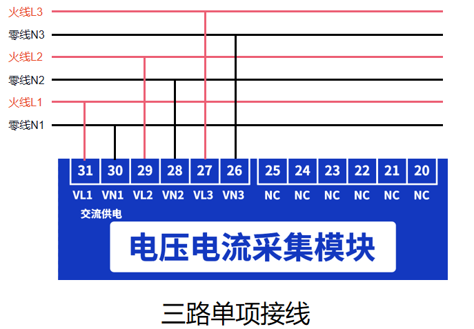 交流電壓采集接線口 | 31 | 電壓1 | VL1火線或相線,VN1為零線 |