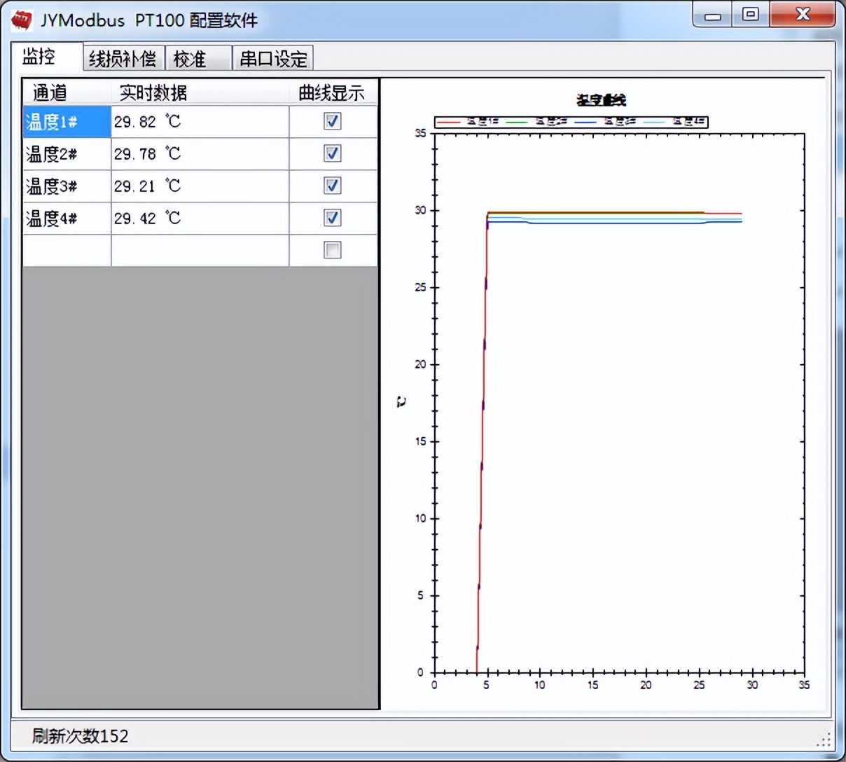 監(jiān)控菜單下可以實時監(jiān)控每路的溫度及變化曲線。