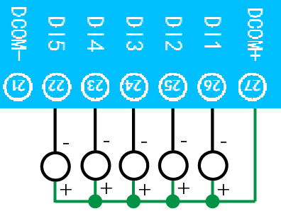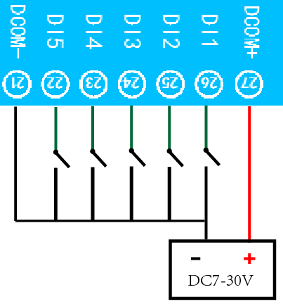 下圖中的電源部分為傳感器供電,AI1-AI8接傳感器信號正,ACOM-為傳感器信號負,ACOM+不用。