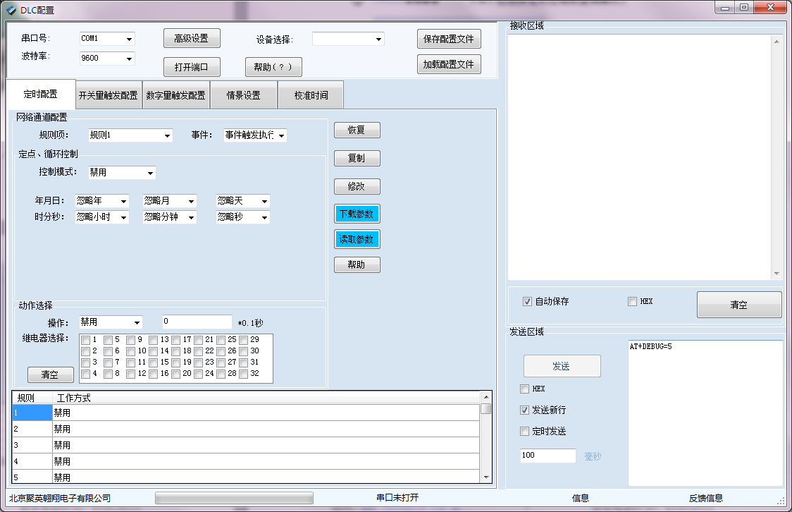 開關量(DI)輸入和模擬量(AI)輸入與繼電器輸出(DO)的對應關系,需要使用DLC配置軟件進行配置。