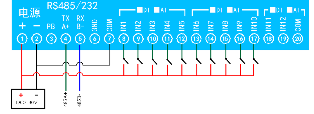 功能說(shuō)明:2DO+2DI+2AI+2AO