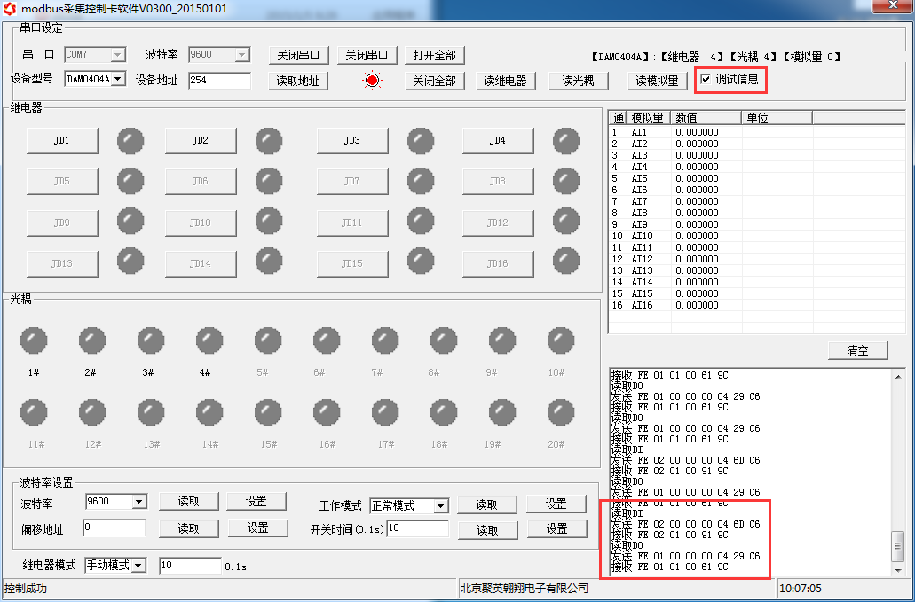 全開(kāi)發(fā)送碼:FE 0F 00 00 00 0A 02 FF FF A1 7C