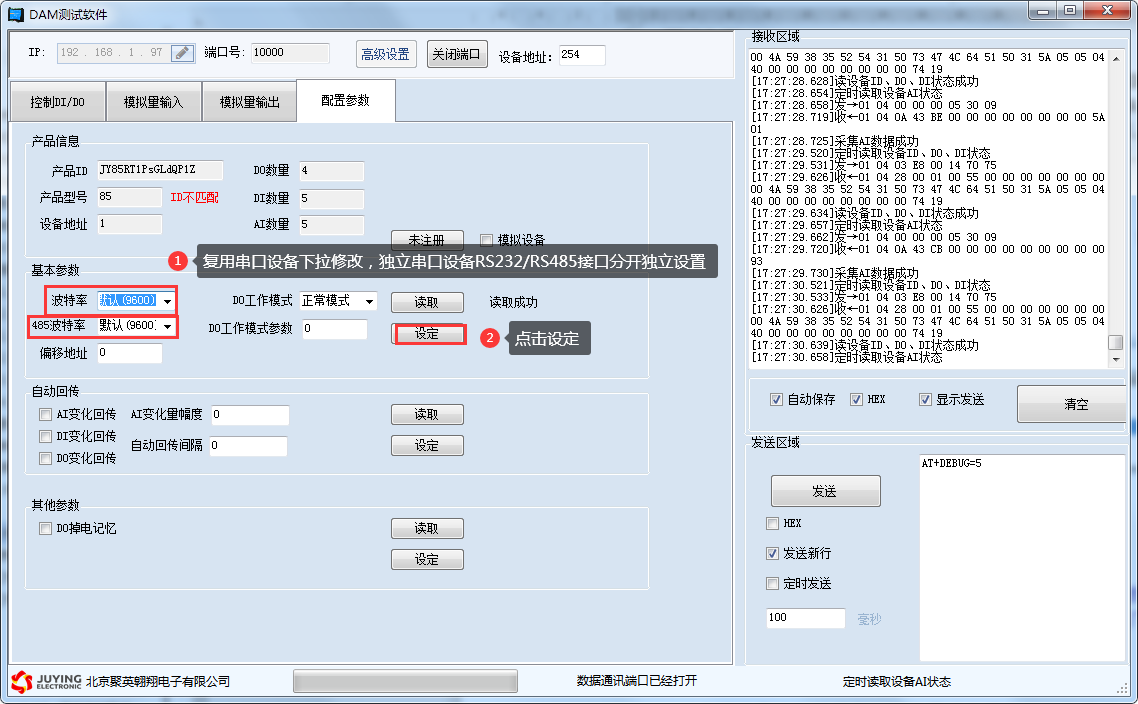 詳細使用說明參考:JYDAM調試軟件使用說明