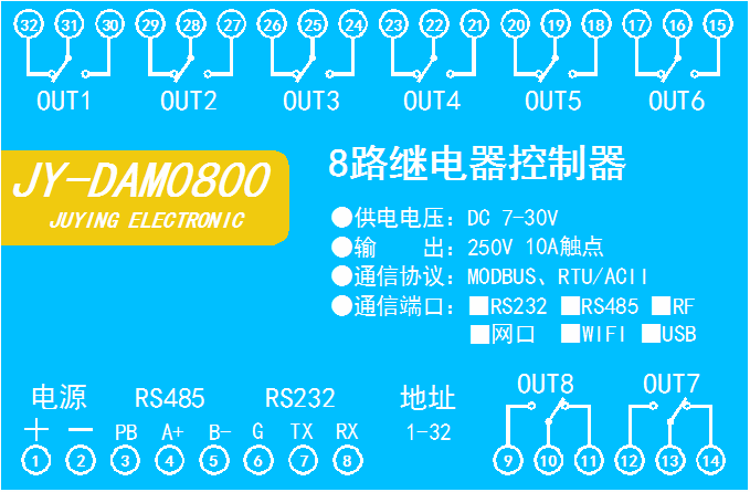 功能說明:8DO+8DI+8AI+8AO