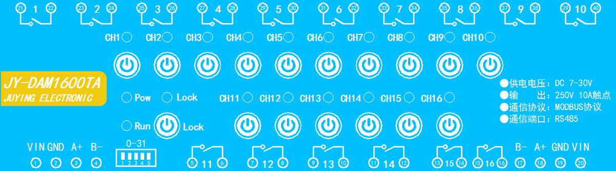 15 | 15引腳和16引腳 | 第16路繼電器輸出 |