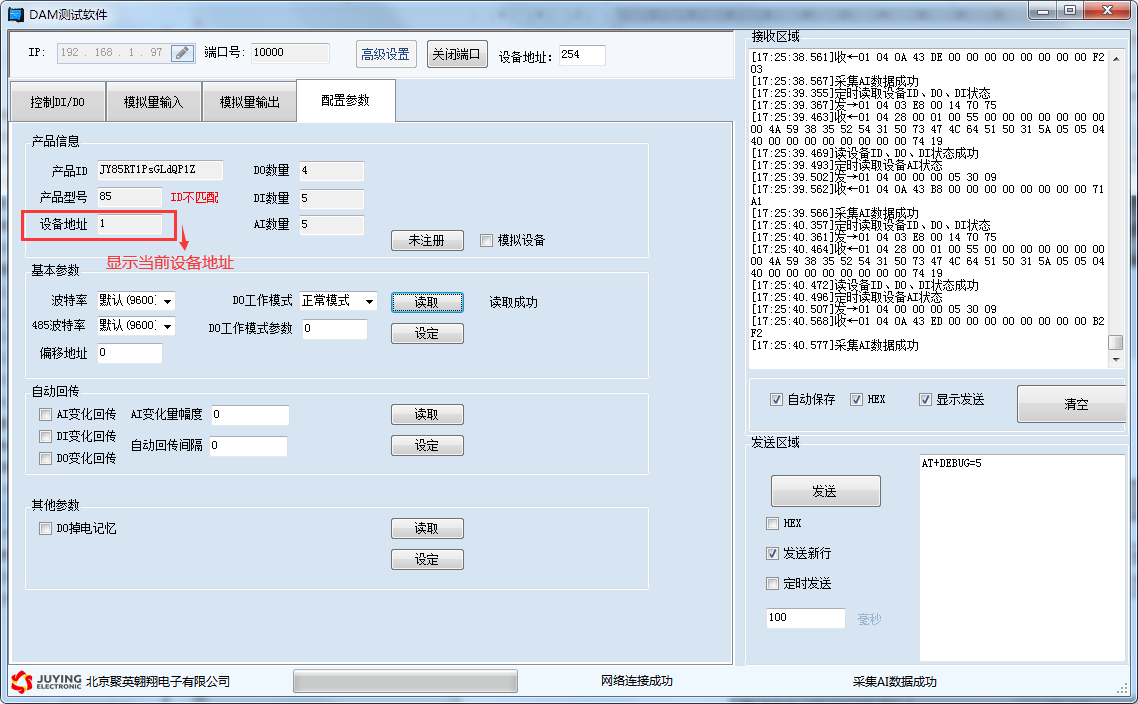 詳細使用說明參考:JYDAM調試軟件使用說明文檔