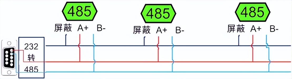 電腦自帶的串口一般是RS232,需要配232-485轉換器(工業環境建議使用有源帶隔離的轉換器),轉換后RS485為A、B兩線,A接板上A端子,B接板上B端子,485屏蔽可以接GND。若設備比較多建議采用雙絞屏蔽線,采用鏈型網絡結構。