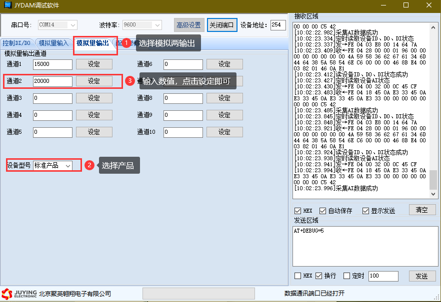 點擊JYDAM調(diào)試軟件下方偏移地址后邊的“讀取”或“設(shè)置”來對設(shè)備的偏移地址進(jìn)行讀取或設(shè)置。