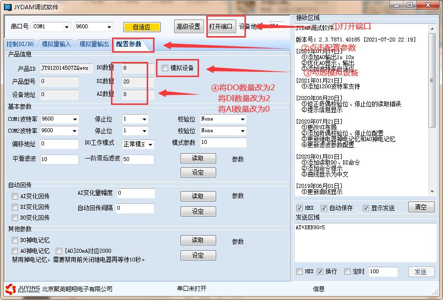 4、將DO數量改為2;將DI數量改為2;將AI數量改為0